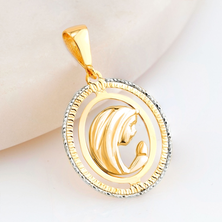 Medalik złoty Matka Boska Fatimska owalna dwukolorowa DEM467