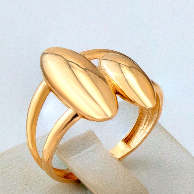 Pierścionek złoty podwójne gładkie owalne elementy PIR1717