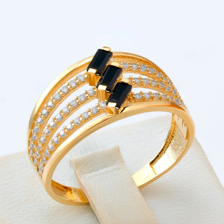 Pierścionek złoty z czarnymi kamieniami i cyrkoniami PIR1587