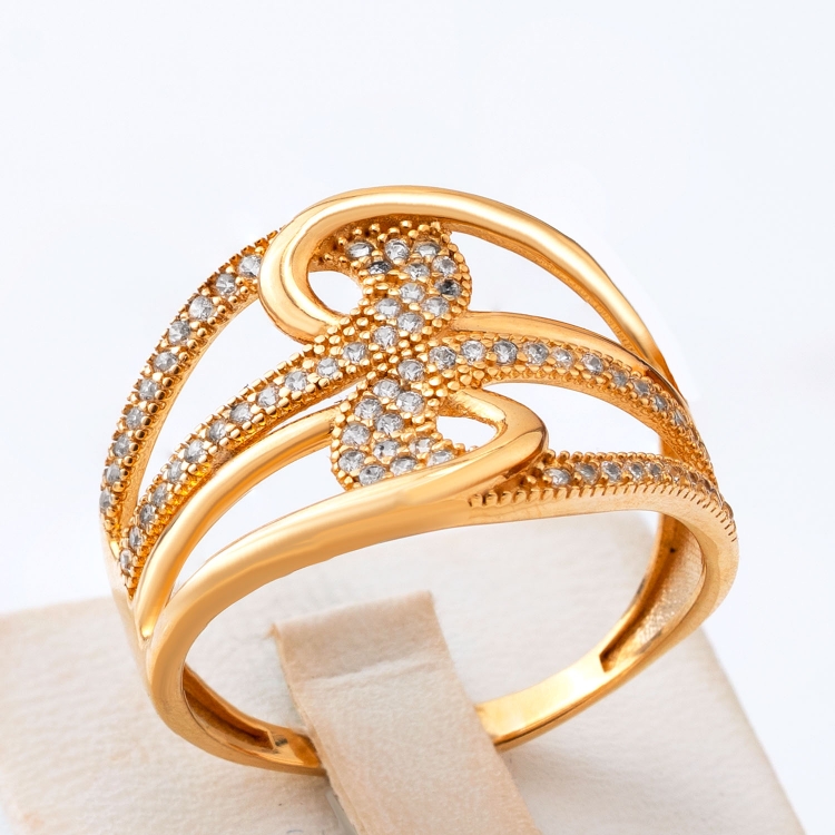 Pierścionek złoty szeroki ozdobny z cyrkoniami PIR1726