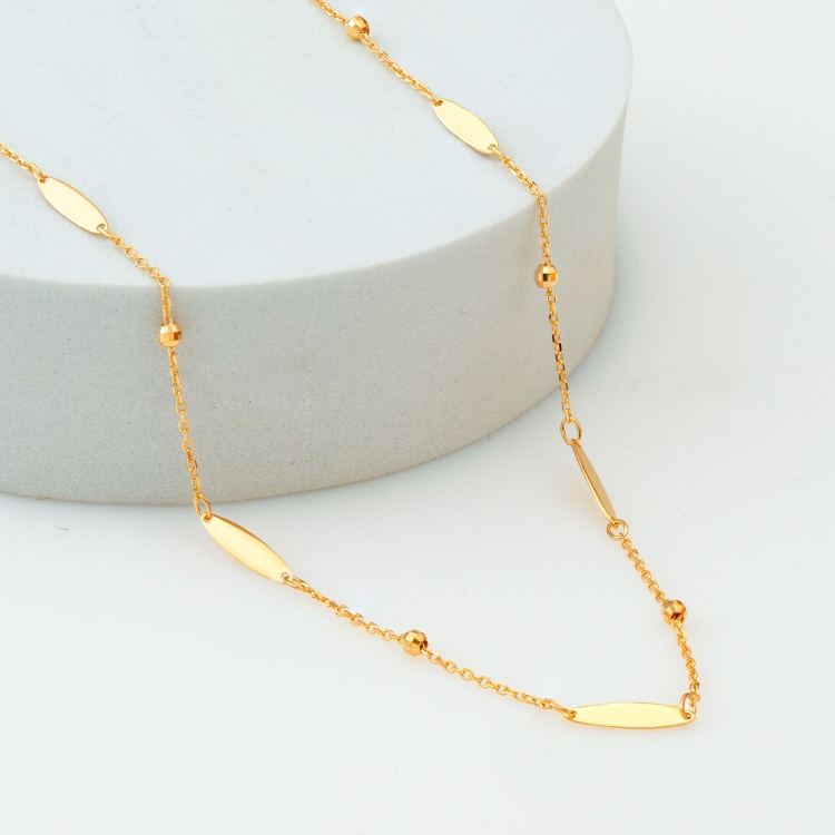 Złoty naszyjnik celebrytka owalne blaszki z diamentowanymi kulkami CL1500