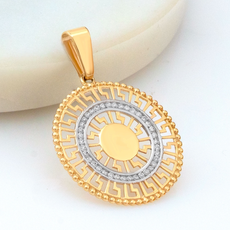 Przywieszka złota okrągła z meandrem greckim dwukolorowa PZR1492