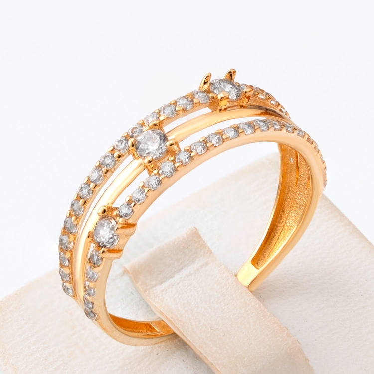 Pierścionek złoty dwa rzędy cyrkoni obrączkowy PIR1747