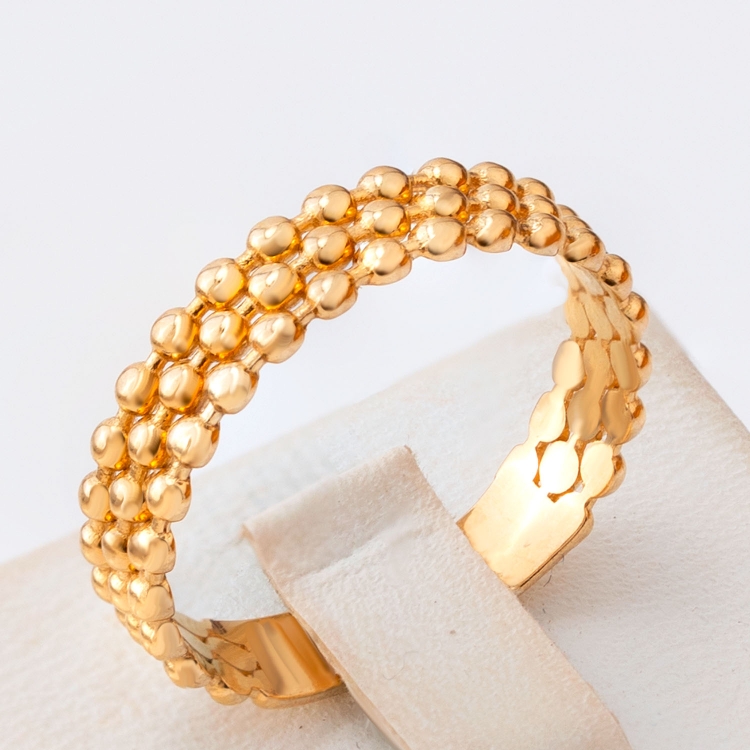 Pierścionek złoty obrączkowy trzy rzędy półkulek PIR1743
