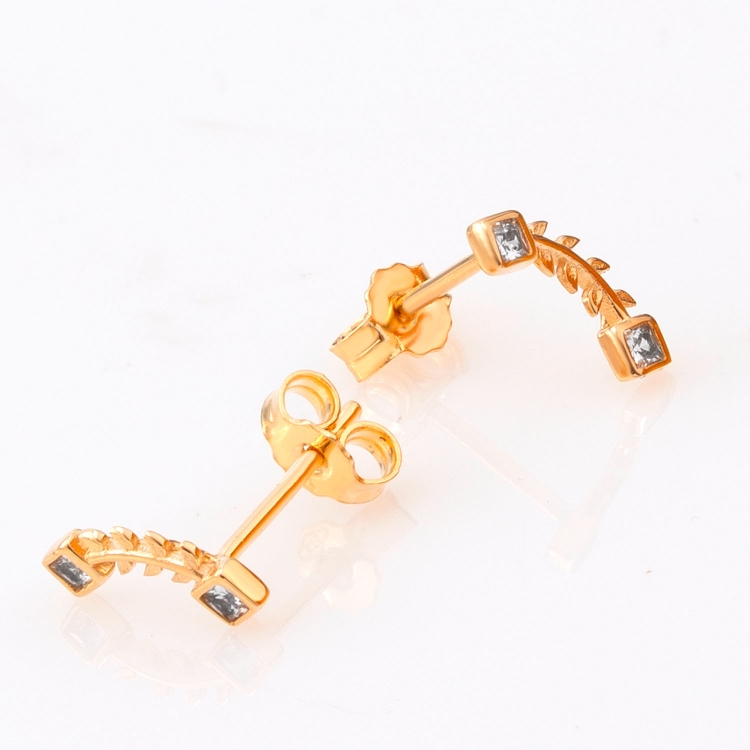 Kolczyki złote gałązka z cyrkoniami KNS1321