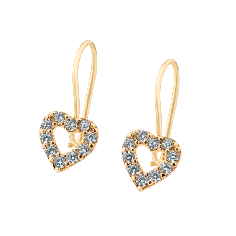 Kolczyki złote wiszące serce z cyrkoniami KW443