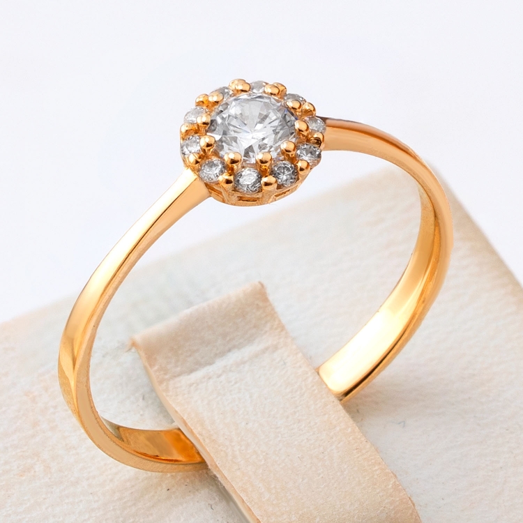 Pierścionek złoty okrągła markiza z cyrkoniami PIR1752