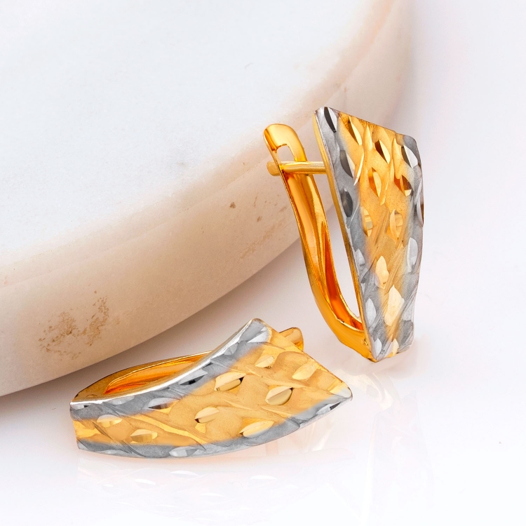 Kolczyki złote zatrzaskowe laserówki dwukolorowe diamentowane KZ875