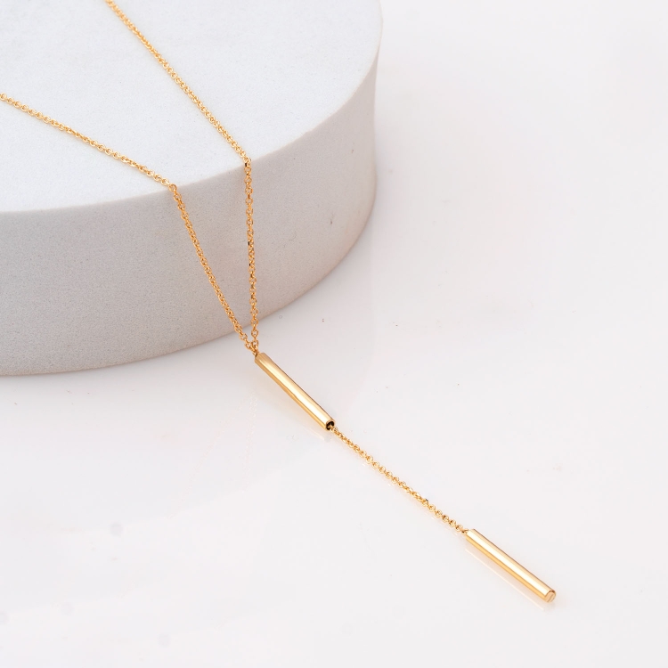 Naszyjnik złoty celebrytka krawatka z dwoma okrągłymi słupkami CL1524