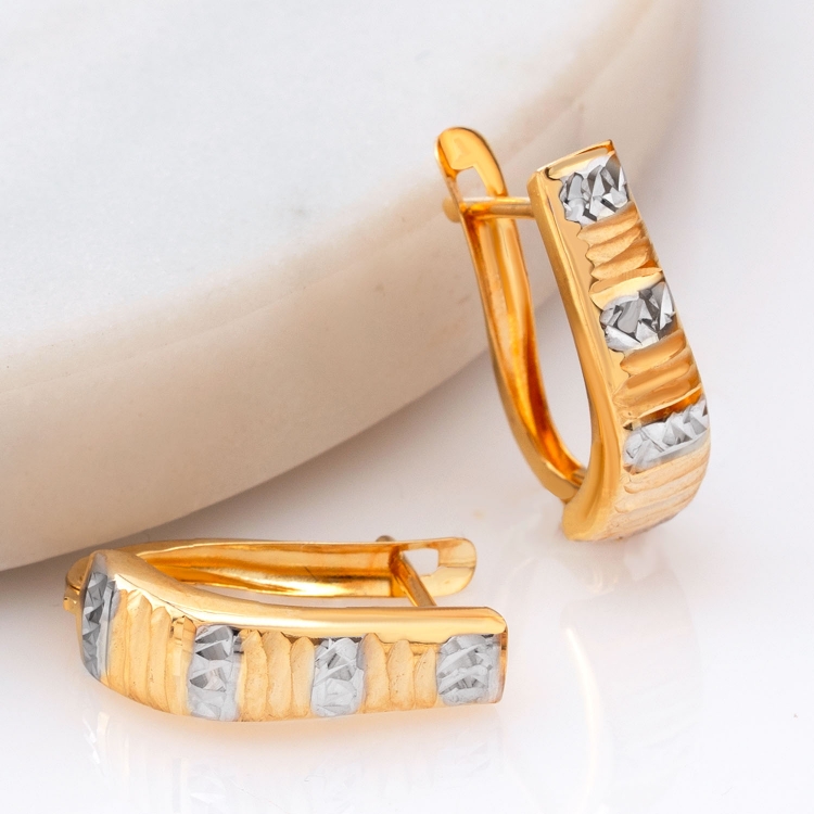 Kolczyki złote laserówki dwukolorowe diamentowane KZ872