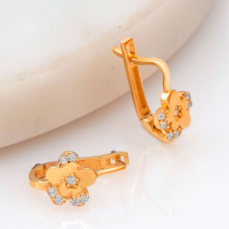 Kolczyki złote kwiatki z cyrkoniami KZ862