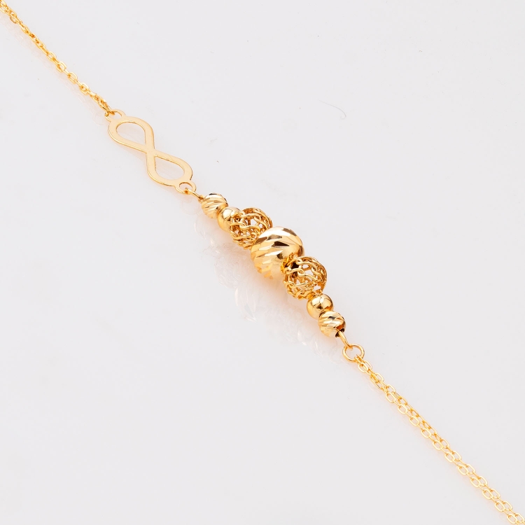 Bransoleta złota ozdobna nieskończoność, ażurowe i diamentowane kulki na podwójnym łańcuszku BOZ951