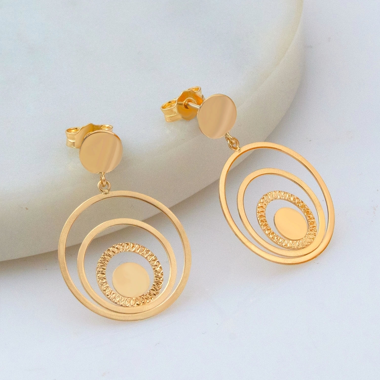 Kolczyki złote kontury kół połączonych ze sobą KW1072