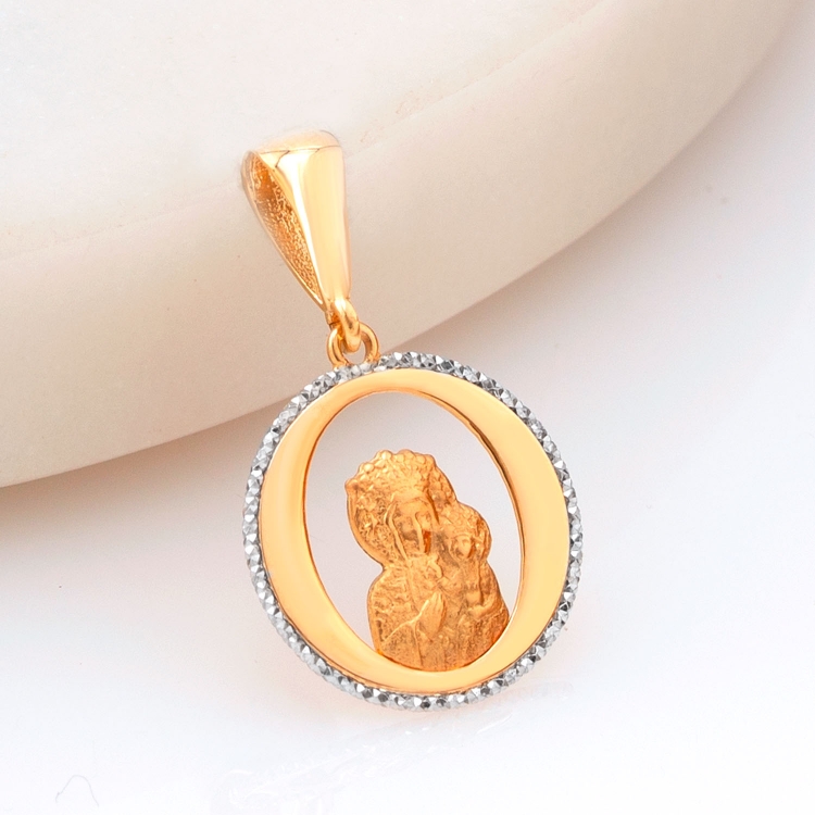 Medalik złoty Matka Boska Częstochowska z diamentowanym obrzeżem DEM471