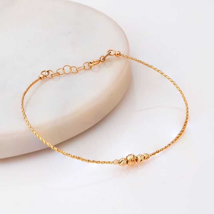 Bransoleta złota ozdobna półsztywna diamentowane kulki BOZ956