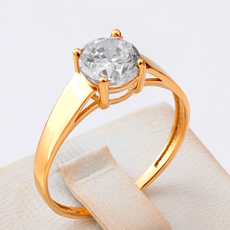 Pierścionek złoty z centralnie osadzoną cyrkonią w czterech łapach PIR1766
