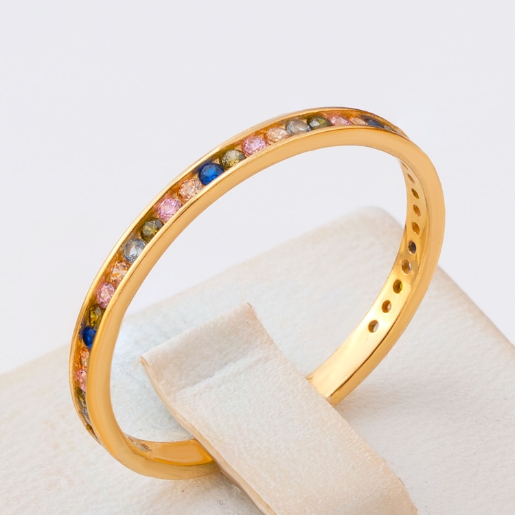 Pierścionek złoty obrączkowy z kolorowymi kamieniami PIR1778