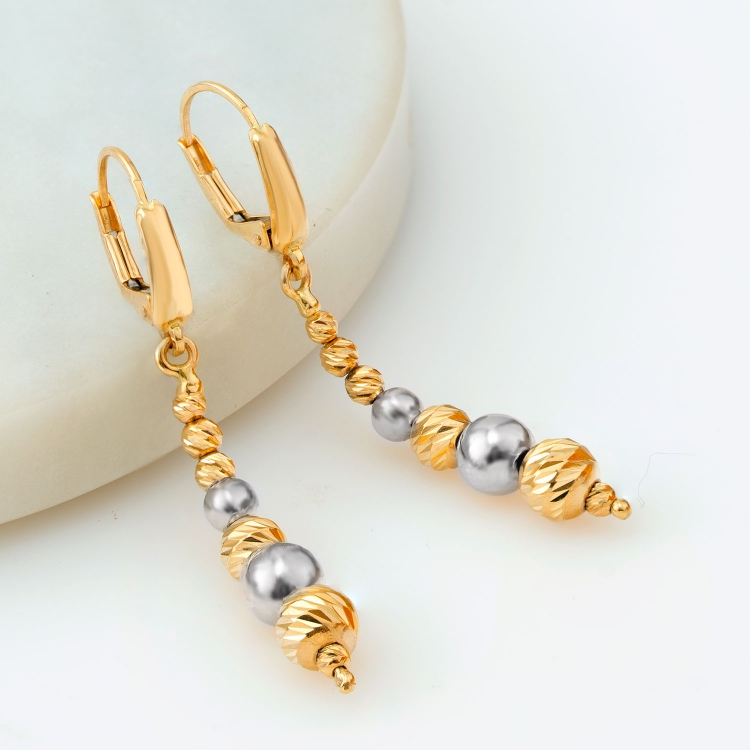 Kolczyki złote gładkie i diamentowane dwukolorowe kulki KW1050