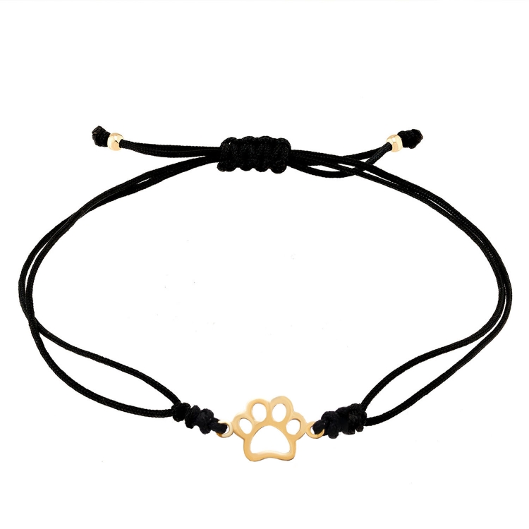 Bransoleta złota na czarnym sznurku łapka psia/kocia BNS320