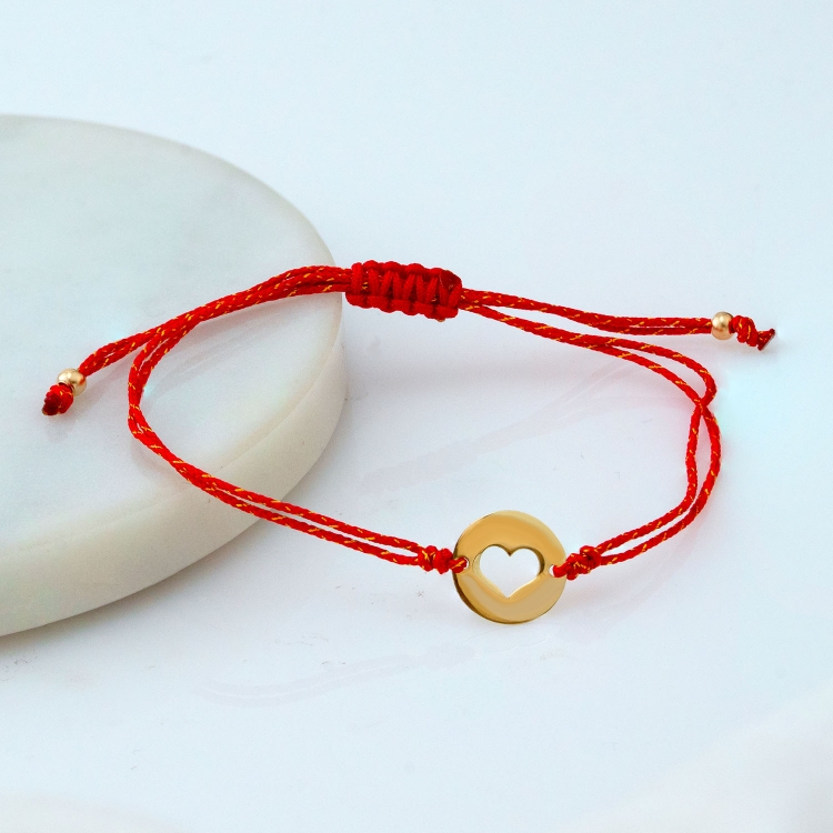 Bransoleta złota na sznurku serduszko w kółku BNS319