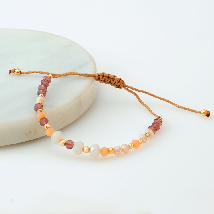 Bransoleta złota na sznurku diamentowane kulki z kolorowymi koralikami BNS303
