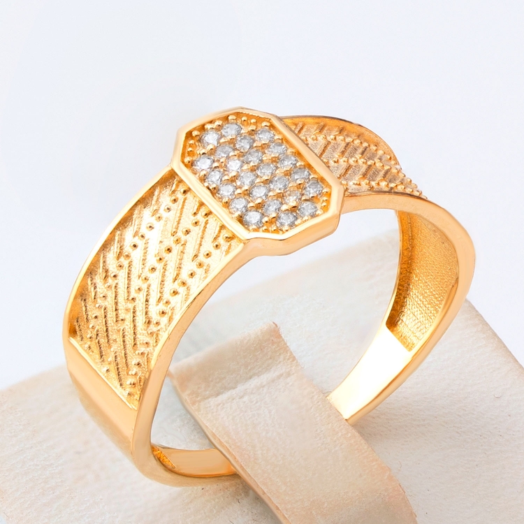 Pierścionek złoty nowoczesny z cyrkoniami PIR1792