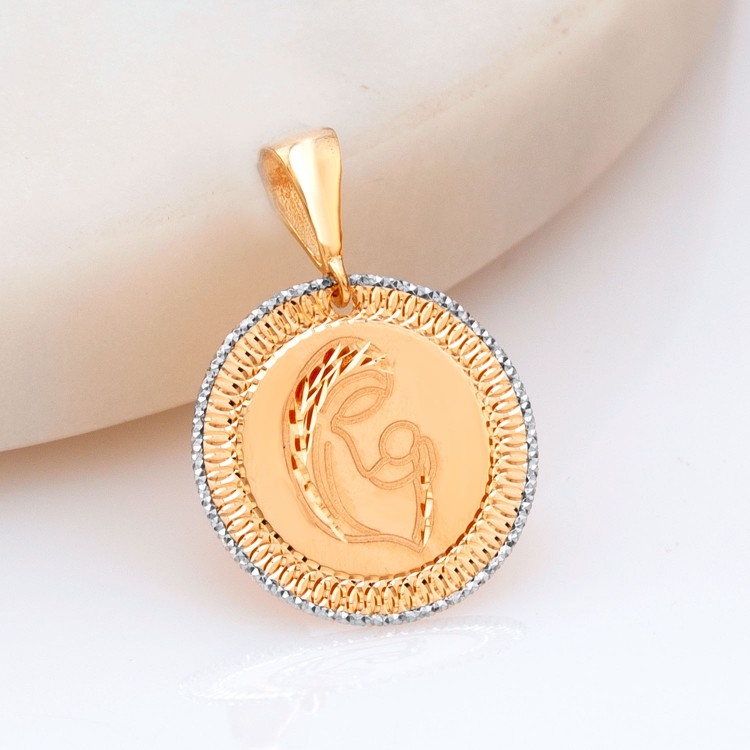 Medalik złoty Matka Boska z dzieciątkiem okrągła DEM479