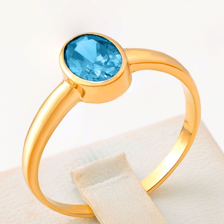 Pierścionek złoty kolorowy owalny kamień w gładkiej oprawie PIR1798