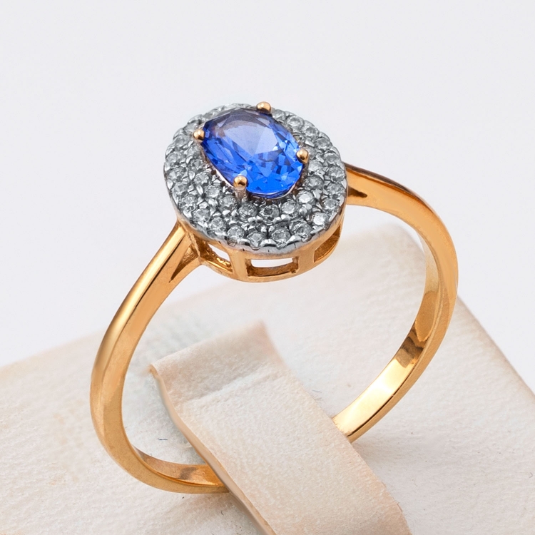 Pierścionek złoty markiza z kolorowym kamieniem i cyrkoniami PIR1814
