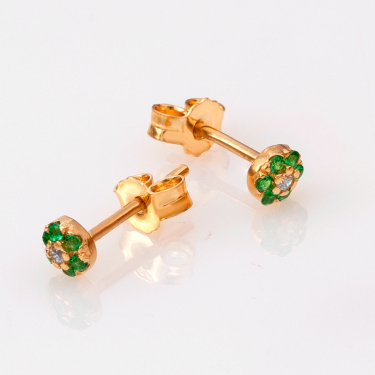 Kolczyki złote okrągłe z cyrkonią i zielonym kamieniami KNS1333