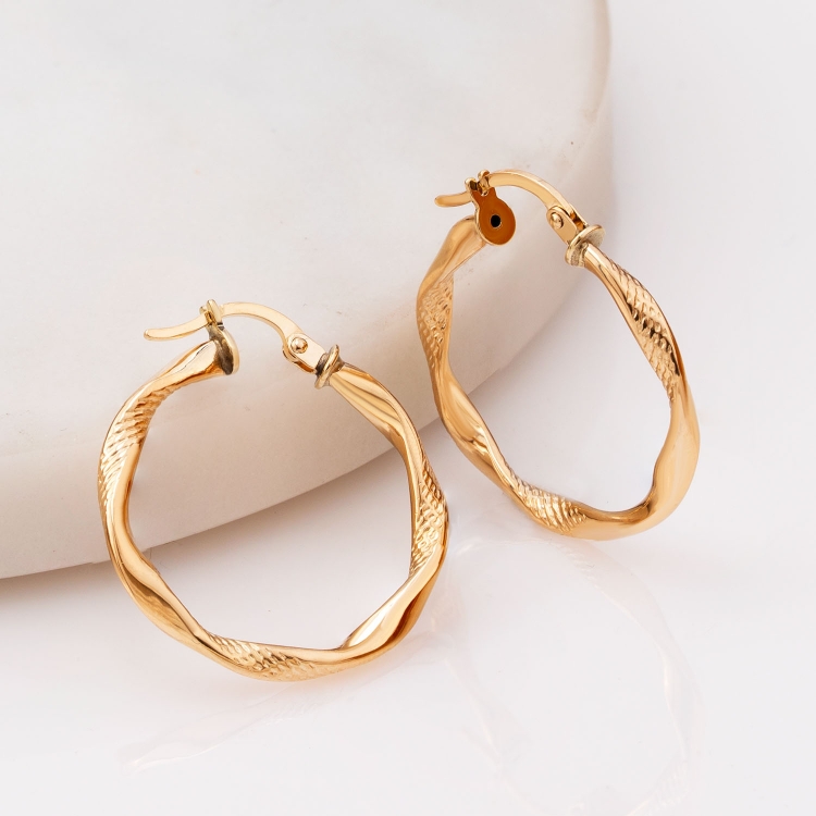 Kolczyki złote koła ozdobnie skręcone KKL574