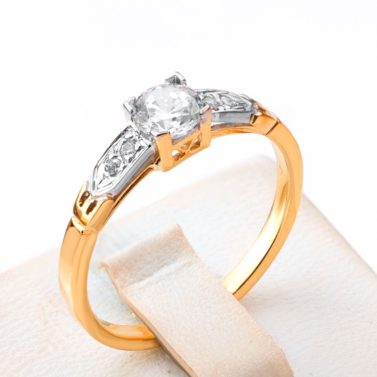 Pierścionek złoty jednokamieniowy w czterech łapkach z cyrkoniami w szynie PIR1807