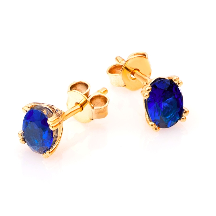 Kolczyki złote owalna cyrkonia granatowa w czterech łapach KNS1344