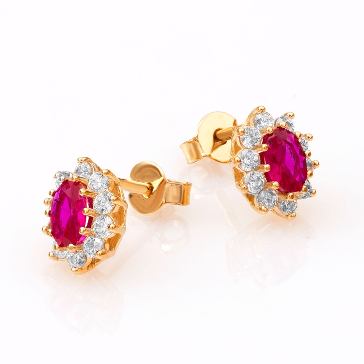 Kolczyki złote owalna markiza z czerwonym kamieniem KNS1339