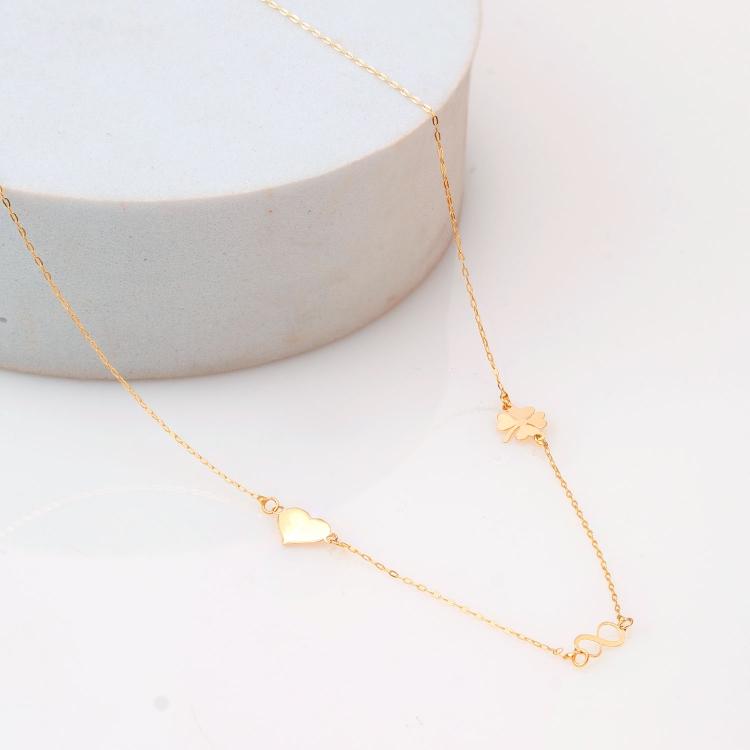 Naszyjnik złoty celebrytka serduszko koniczyna nieskończoność z gładkiej blaszki CL1543