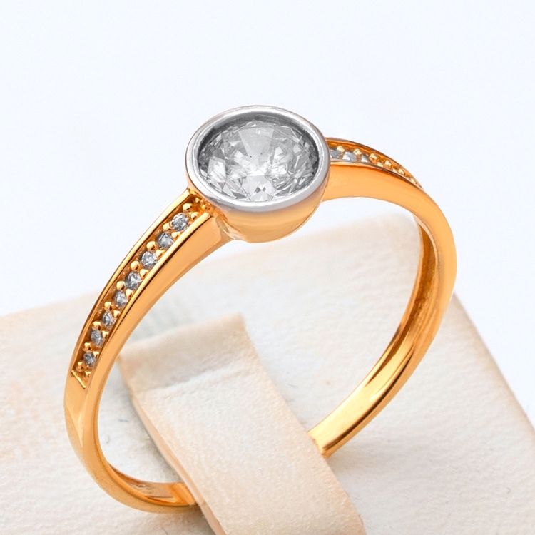 Pierścionek złoty z centralnym kamieniem w gładkiej oprawie i cyrkoniami w szynie PIR1821
