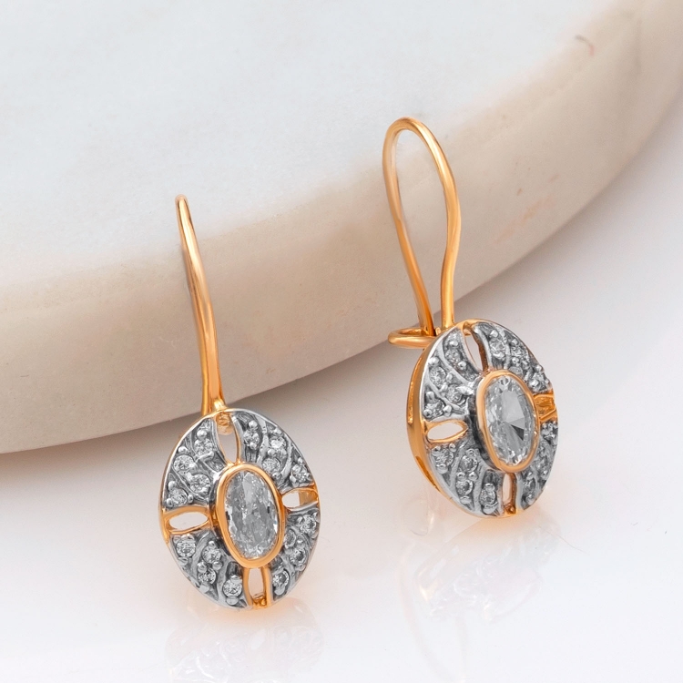 Kolczyki złote owalne ażurowe z owalną cyrkonią KW1099