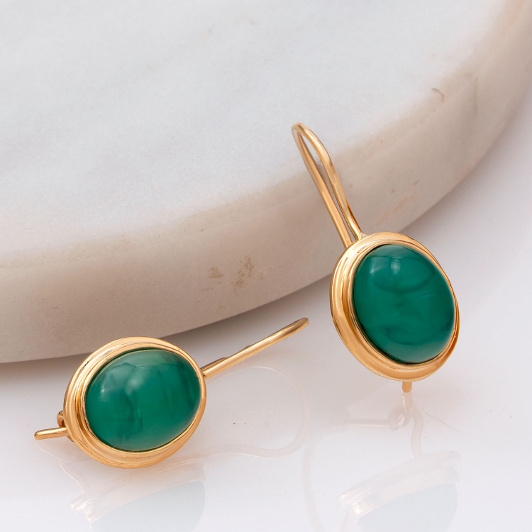 Kolczyki złote owalne w gładkie oprawie z zielonym kamieniem KW1098