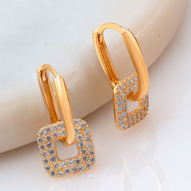 Kolczyki złote z ruchomy element w kształcie kwadratu z cyrkoniami KW1087
