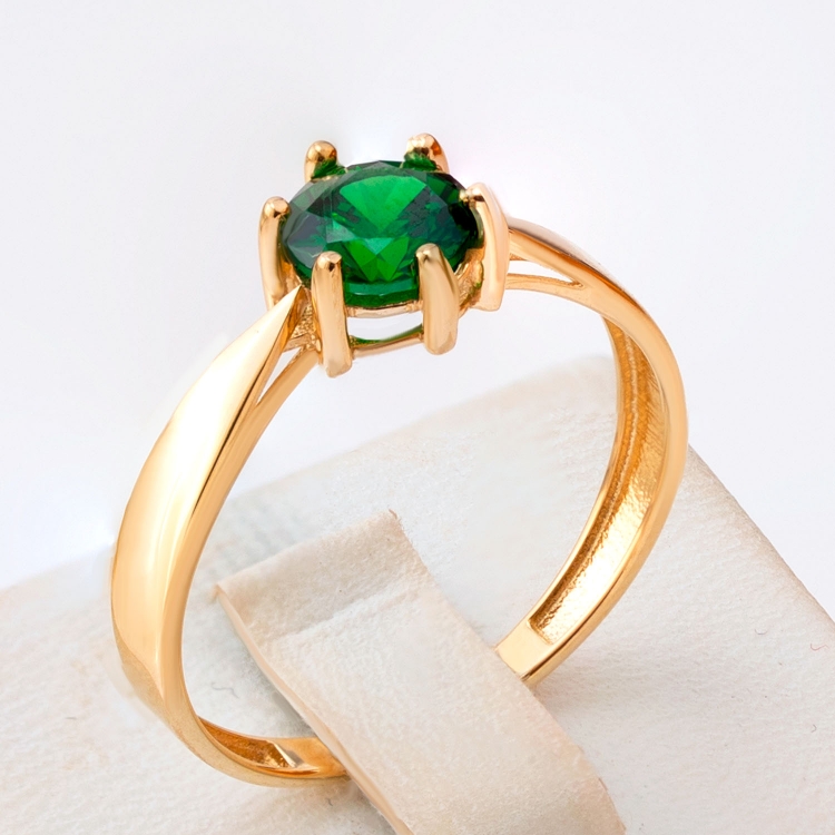 Złoty pierścionek z centralnie osadzonym zielonym kamieniem PIR1784