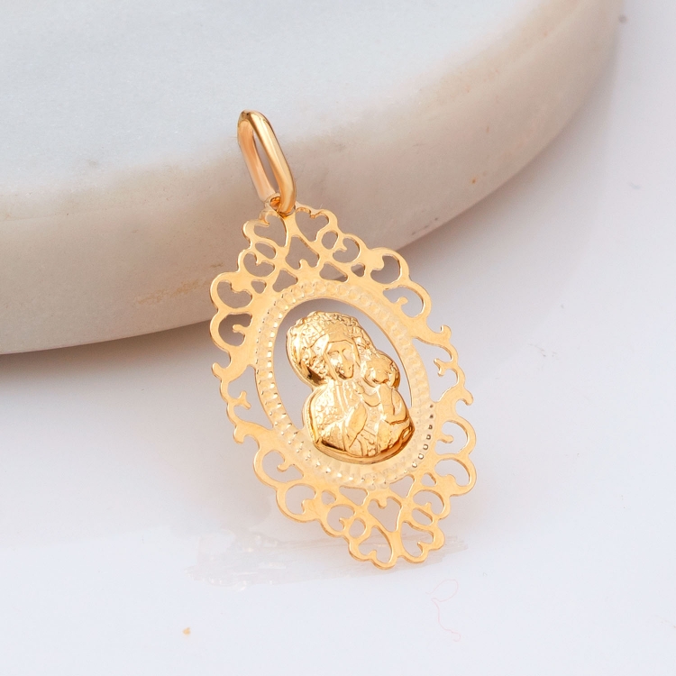 Medalik złoty Matka Batka Boska Częstochowska obrzeże ażurowe DEM486