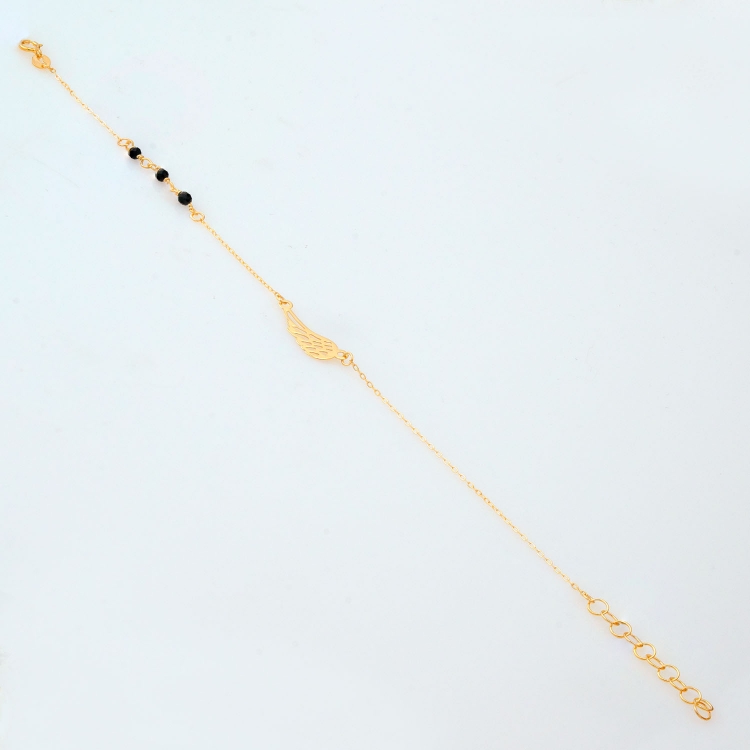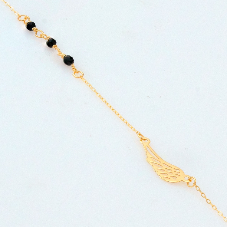 Bransoleta złota celebrytkowa ażurowe skrzydełko z czarnymi koralikami BCL499