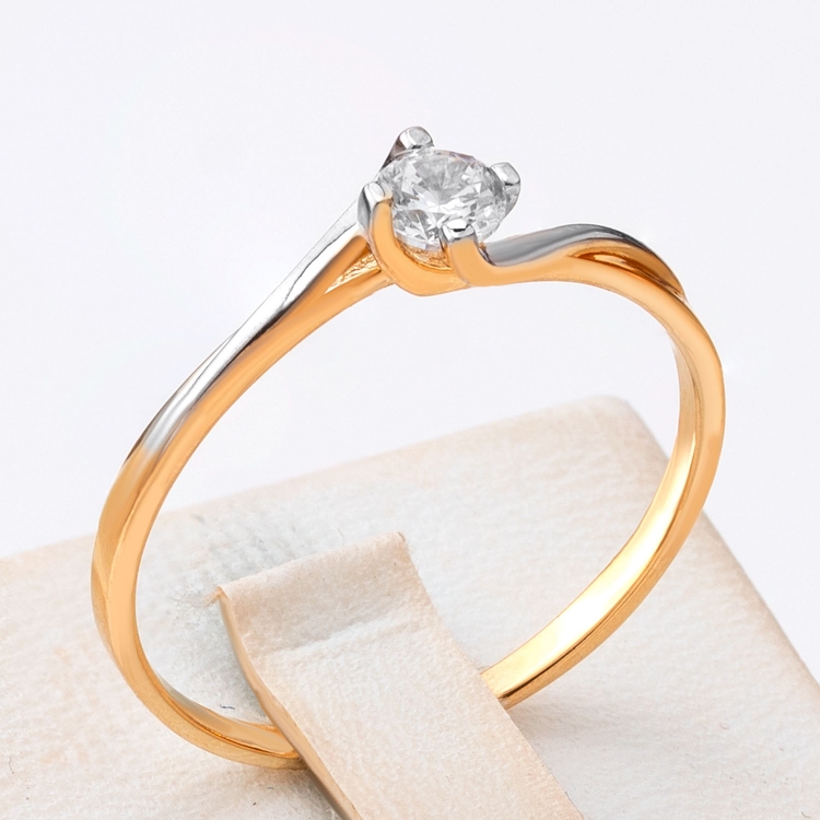 Pierścionek złoty z centralnie osadzonym kamieniem w czterech łapach PIR1838
