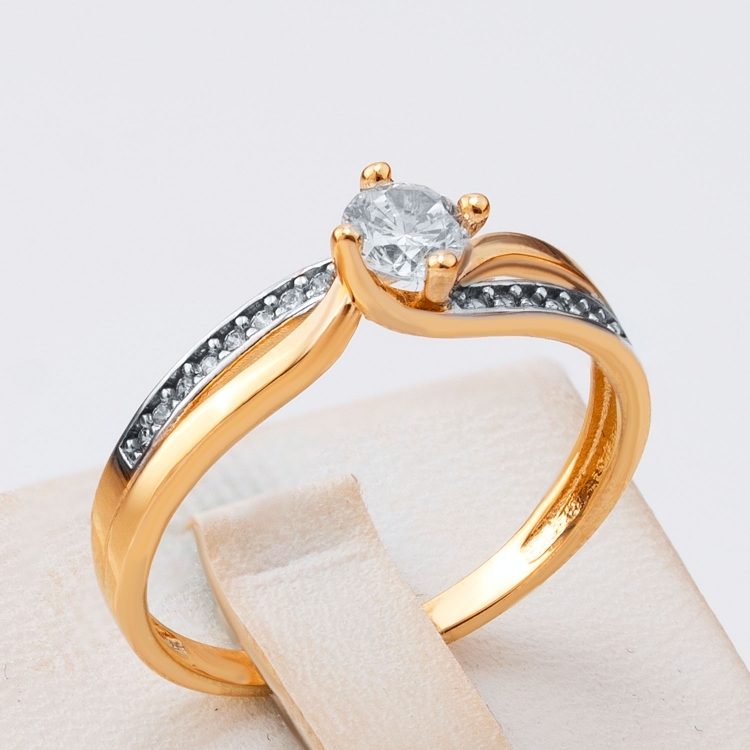 Pierścionek złoty jednokamieniowy w czterech łapach z cyrkoniami w szynie PIR1840