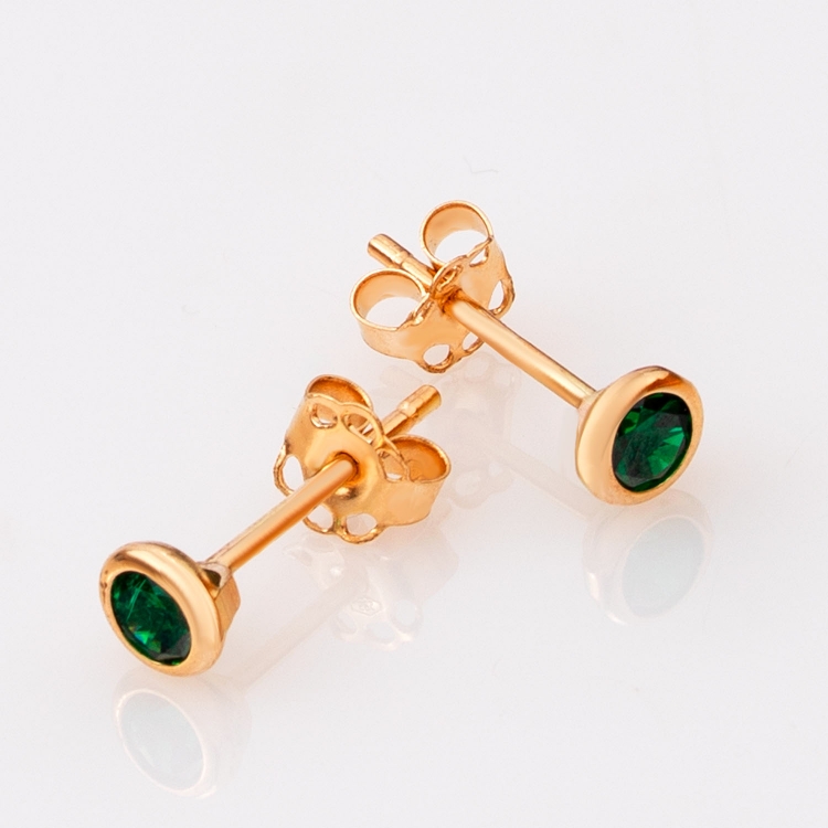 Kolczyki złote z zielonymi kamieniami w gładkiej okrągłej oprawie KNS1347