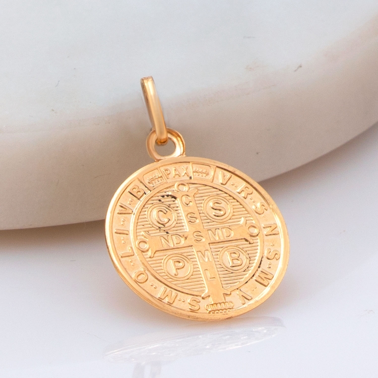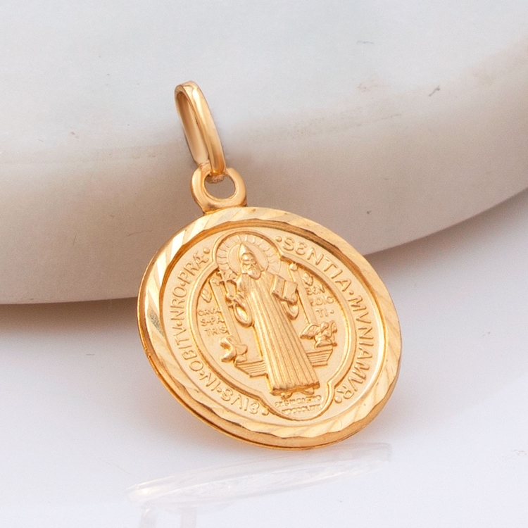Medalik złoty okrgły Benedykt obrzeże diamentowane DEM487