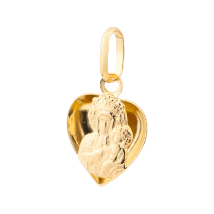 Medalik złoty wklęsłe Serce Częstochowska Matka Boża DEM008-W