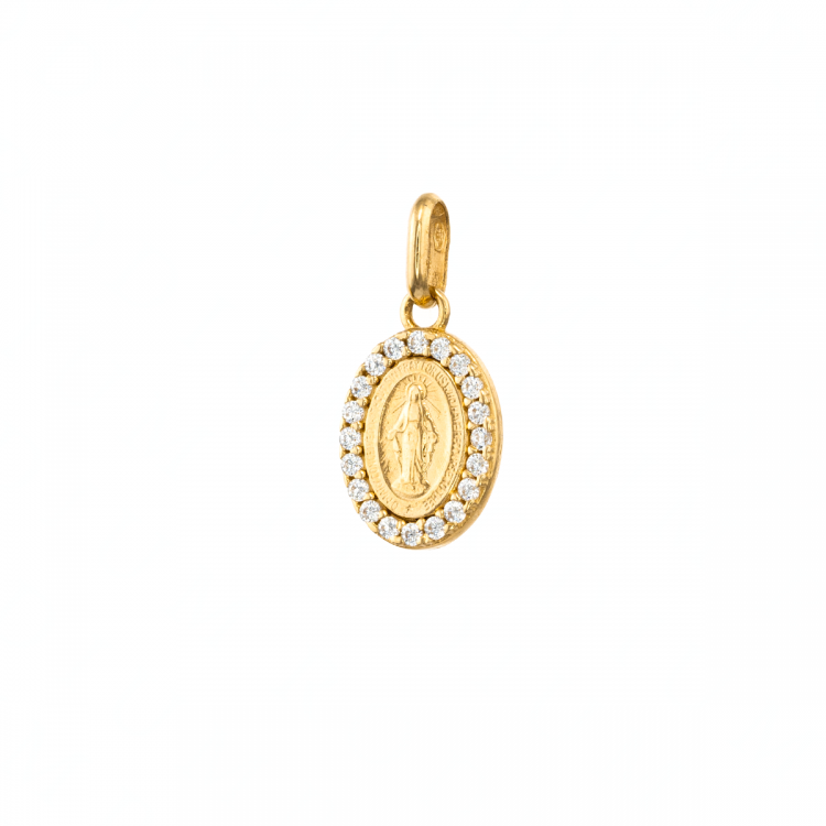 Medalik złoty Matka Boża Cudowna z cyrkoniami DEM165