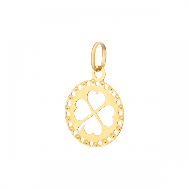 Przywieszka złota okrągła z wyciętą koniczyną PZR258