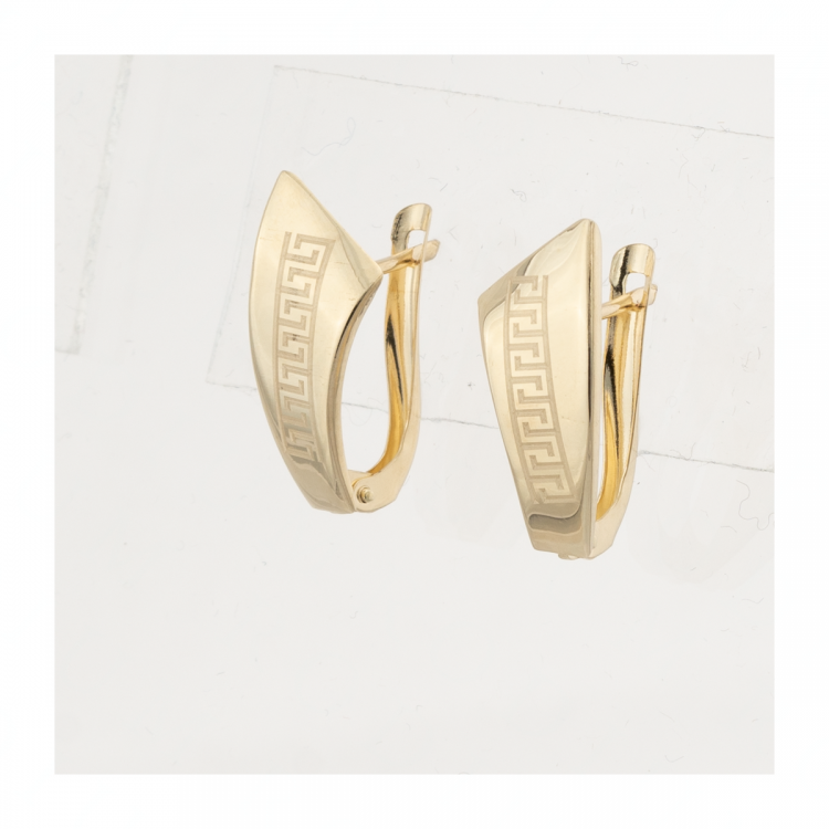 Kolczyki złote zatrzaskowe laserówki gładkie z greckim wzorem KZ149